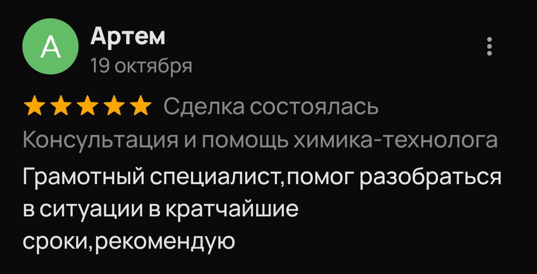 Меня зовут Илья Борисов, специалист-химик с 2011 года, выпускник МГУ. Любая задача в химии требует основательного и ответственного подхода. Особенно, когда от нее зависит успех и прибыль всего дела. Я занимаюсь работой лично, в своей лаборатории и отвечаю за результат! Более 50 успешно решенных задач от клиентов дали бесценный опыт и понимание химических задач в бизнесе. Поэтому при обращении ко мне вы можете быть уверены, что получите правильный и грамотный ответ.